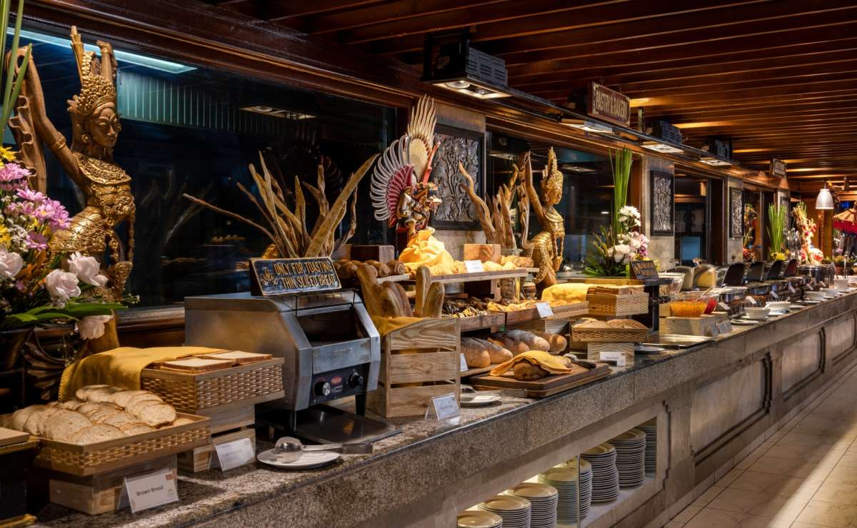Start your day at our environmentally-friendly hotel in Bali with a sun-filled buffet breakfast. Our Tirta Restaurant offers a relaxed beachside location and casual all-day dining, with a menu offering a range of popular favorites and a separate children’s menu. The adjoining swim-up bar serves an extensive list of international drinks to help you chill during a hot day in the tropics.